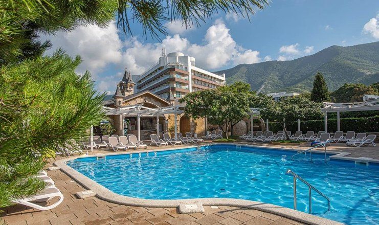 Уютный семейный курорт с ультра все включено находится в живописном центре города Геленджик. Общая площадь территории составляет 43 000 квадратных метров, на которой есть все удобства для семейного отдыха: собственный детский аквапарк, спортивные и игровые площадки, веревочный парк, комплекс бассейнов и Банный комплекс с саунами, а также Центр красоты и здоровья Essentie.